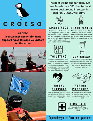 If sailors are out for a full day of racing there will be a 15 minute CROESO comfort break that will be signalled by the committee boat raising a CROESO flag.